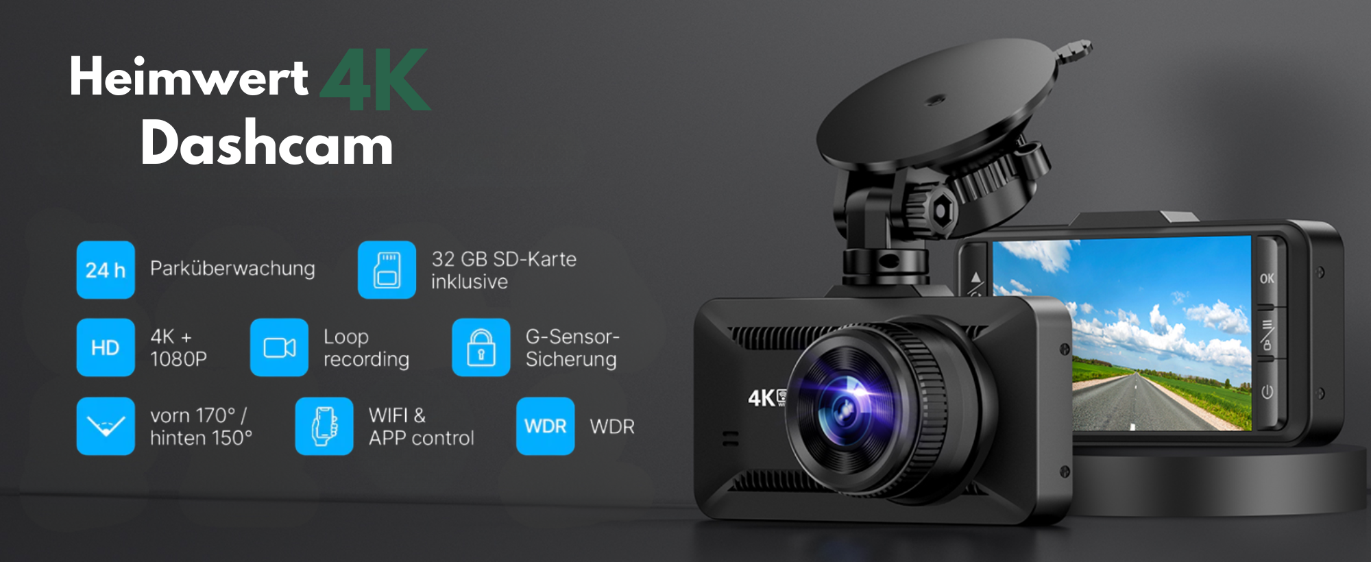 Die Heimwert Dashcam ist eine professionelle Dual-Kamera-Lösung für deutsche Fahrer, die Wert auf kristallklare Beweissicherung und zuverlässige Videoqualität legen. Mit 4K Ultra HD Auflösung und einem großformatigen 3,94-Zoll-Bildschirm bietet sie eine intuitive Bedienung direkt am Fahrzeug.