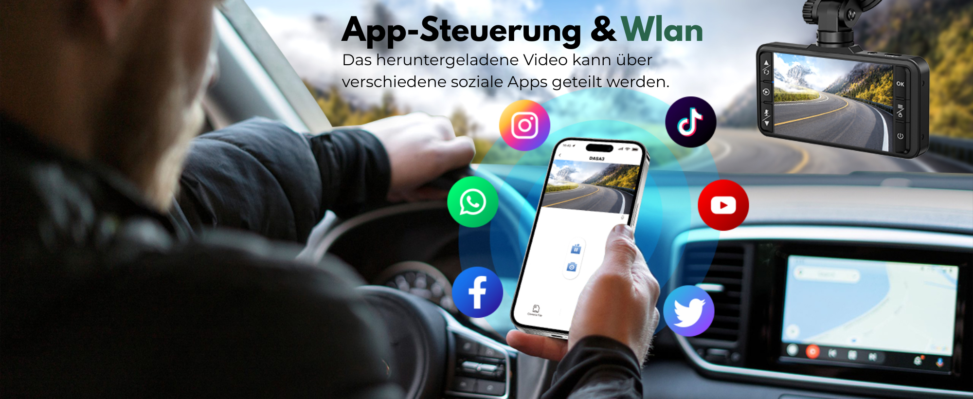 Das System erfasst die Fahrtroute aus zwei Perspektiven: Die Frontkamera dokumentiert den Fahrtweg mit breitem 170°-Weitwinkel und erfasst damit nicht nur die Straße vor dir, sondern auch Randbereiche und seitliche Bedrohungen. Die unauffällige Rückkamera sorgt für Sicherheit bei Auffahrunfällen und Parkplatz-Vorfällen.